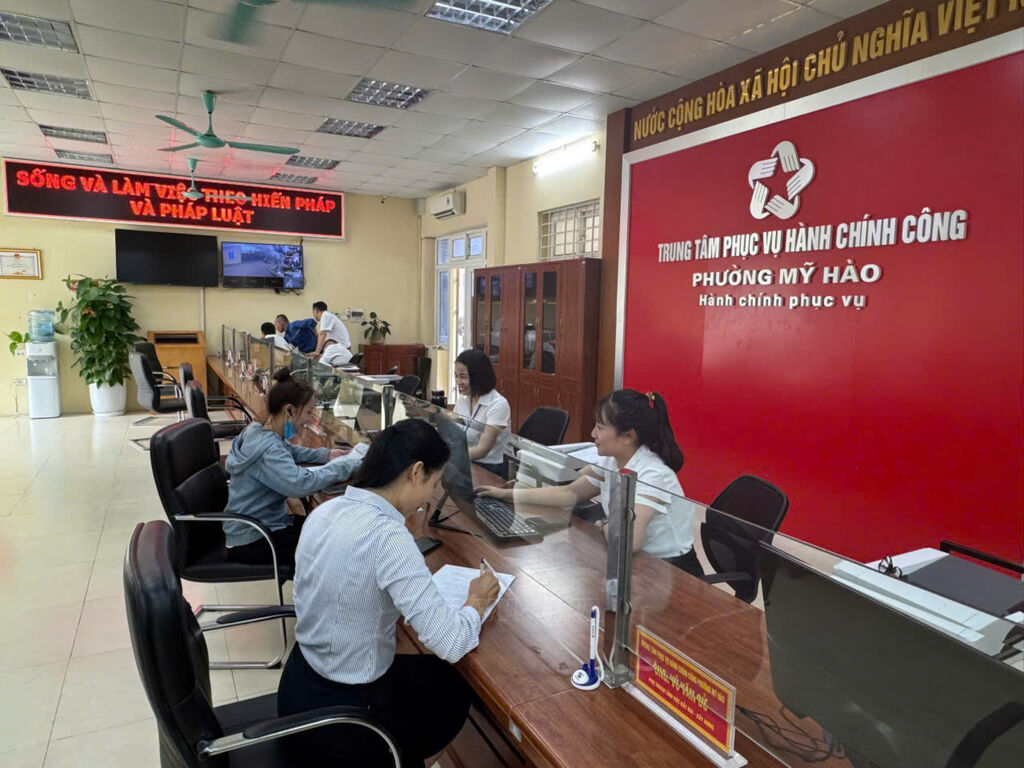 Ghi nhận tại Trung tâm Phục vụ hành chính công phường Mỹ Hào (Hưng Yên), đơn vị này đã tiếp nhận và số hóa 100% hồ sơ, trong đó, 99,8% hồ sơ nộp trực tuyến, toàn bộ 417 thủ tục hành chính được tích hợp trên hệ thống một cửa điện tử.