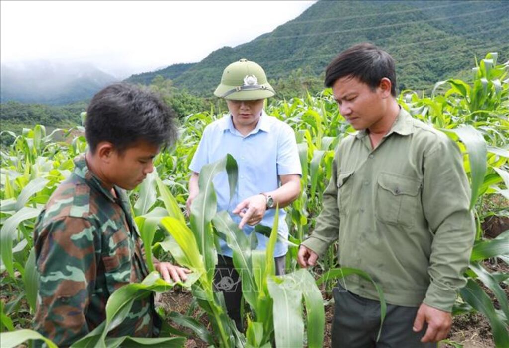 | Cán bộ xã Nậm Hàng, huyện Nậm Nhùn hướng dẫn người dân cách phát hiện sâu bệnh để phòng, chống góp phần nâng cao năng suất cây trồng. |