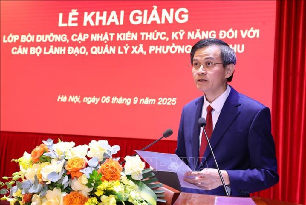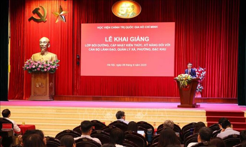 Sáng 6/9, tại Hà Nội, Học viện Chính trị quốc gia Hồ Chí Minh khai giảng lớp Bồi dưỡng cập nhật kiến thức, kỹ năng đối với cán bộ lãnh đạo, quản lý xã, phường, đặc khu để triển khai các thông báo kết luận của Bộ Chính trị, Ban Bí thư về nâng cao năng lực chuyên môn, nghiệp vụ liên quan đến công tác tổ chức xây dựng Đảng, quản lý nhà nước đối với cán bộ chủ chốt cấp xã. Lớp bồi dưỡng được tổ chức trực tuyến trên toàn quốc.