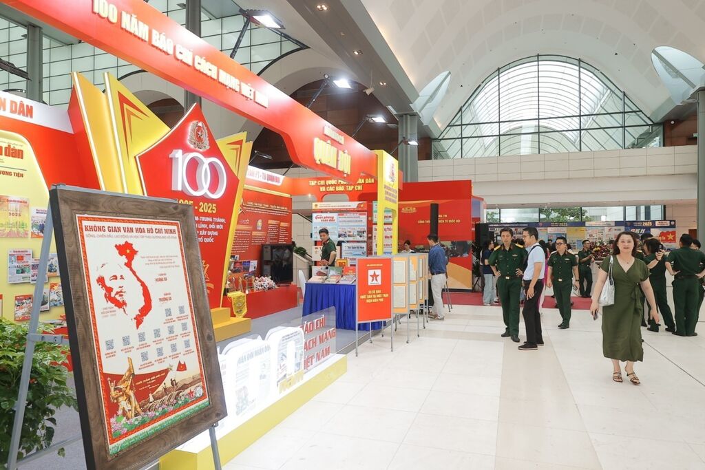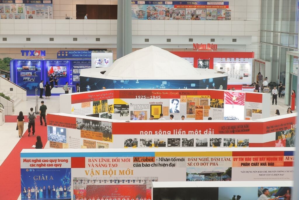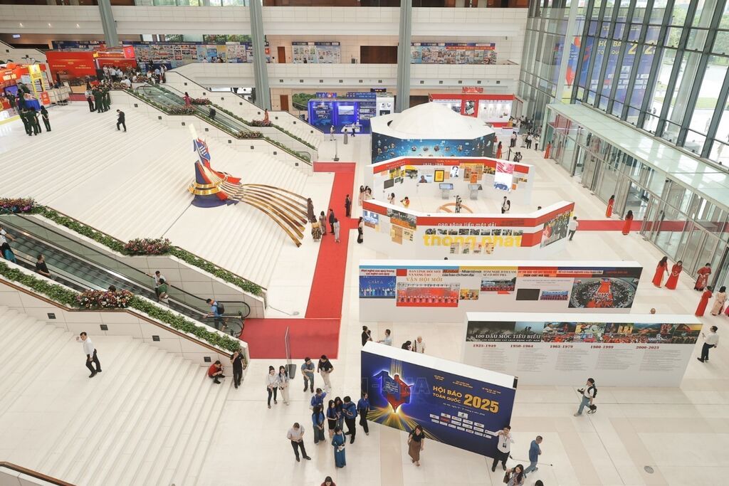 Kỷ niệm 100 năm Báo chí cách mạng Việt Nam (21/6/1925 – 21/6/2025), sáng 19/6/2025, tại Hà Nội, Hội Nhà báo Việt Nam tổ chức Hội báo toàn quốc năm 2025 với chủ đề “Báo chí Việt Nam – Trung thành, Sáng tạo, Bản lĩnh, Đổi mới vì sự nghiệp xây dựng và bảo vệ Tổ quốc”. Hội Báo toàn quốc năm nay có hơn 80 đơn vị báo chí Trung ương và địa phương tham gia với gần 130 gian trưng bày đặc sắc của những tờ báo, tạp chí phổ biến, tạp chí chuyên ngành, các cơ sở đào tạo báo chí lớn, bao trùm các mặt đời sống kinh tế - chính trị - văn hóa – xã hội – quốc phòng – an ninh – đối ngoại của đất nước. Ảnh: TTXVN