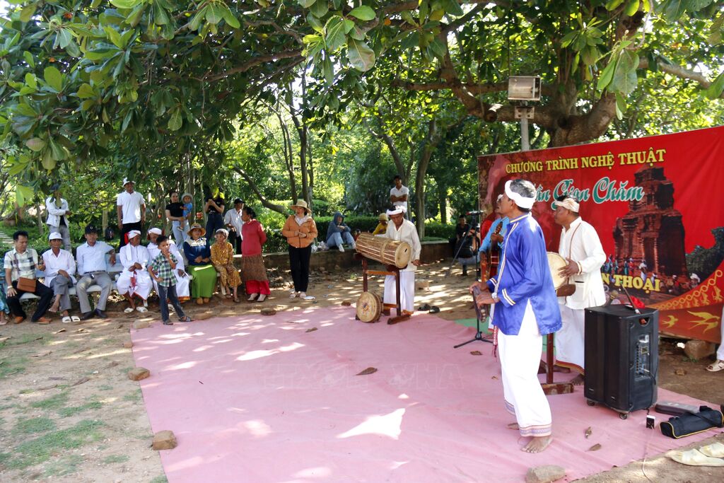 | Trình diễn nhạc cụ truyền thống tại Khu di tích tháp Pô Sah Inư nhằm tạo thêm không gian trải nghiệm cho du khách. |