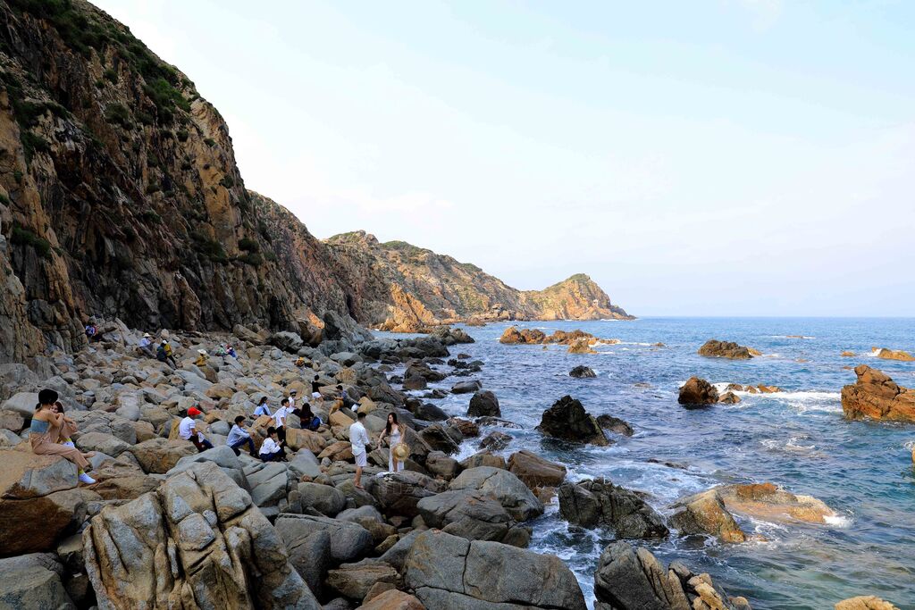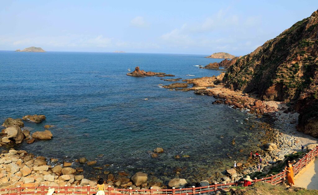 Eo Gió thuộc thôn Lý Lương, xã đảo Nhơn Lý, thành phố Quy Nhơn, tỉnh Bình Định. Là một eo biển xanh, đẹp hình vòng cung được những rặng núi đá cao uốn cong ôm trọn vào lòng. Địa hình thiên nhiên và thời gian đã tạo nên những khe rãnh xẻ ngang đồi núi, hình thành các vách núi sừng sững, tạo cho Eo Gió một vẻ đẹp hoang sơ, kỳ vĩ, thu hút đông đảo du khách trong và ngoài nước. Ảnh: TTXVN