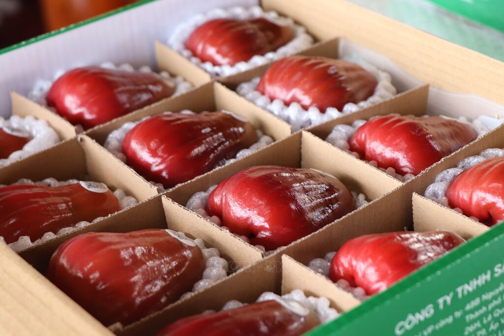 Bằng việc lai tạo thành công giống mận (roi) hồng Sân Tiên và áp dụng quy trình canh tác theo hướng hữu cơ nghiêm ngặt, anh Trần Văn Phục, ấp An Quới, xã Cù Lao Dung (thành phố Cần Thơ) không chỉ làm giàu cho gia đình mà còn mở ra hướng đi bền vững, nâng tầm giá trị nông sản Việt vươn ra thế giới. Với 50ha canh tác mận hồng Sân Tiên, năng suất khoảng 20 tấn/ha, giá bán từ 150.000 đồng - 230.000 đồng/kg (tùy loại), mỗi năm anh Phục thu lợi nhuận 2 tỷ đồng/ha. Ảnh: Thu Hiền – TTXVN