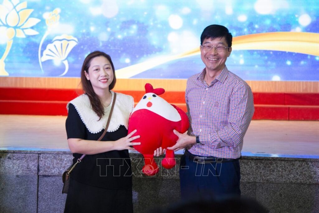 | Chị Lưu Ngọc Lan và Tiến sĩ Trần Ngọc Quế (Giám đốc Trung tâm Máu Quốc gia Viện Huyết học – Truyền máu Trung ương) tại buổi Gặp mặt người hiến tiểu cầu tiêu biểu 2024. |