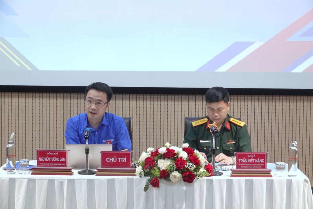 | Bí thư Trung ương Đoàn, Phó Chủ nhiệm Thường trực Ủy ban Quốc gia về thanh niên Việt Nam Nguyễn Tường Lâm và Đại tá Trần Viết Năng, Trưởng ban Thanh niên Quân đội đồng chủ trì Hội nghị. |