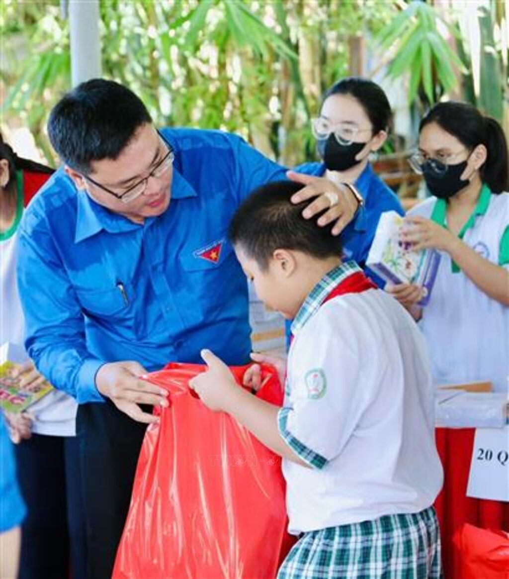 | Anh Lại Phước Trường Thành, Bí thư Đoàn phường Cái Khế, quận Ninh Kiều trao quà hỗ trợ thiếu nhi có hoàn cảnh khó khăn. |