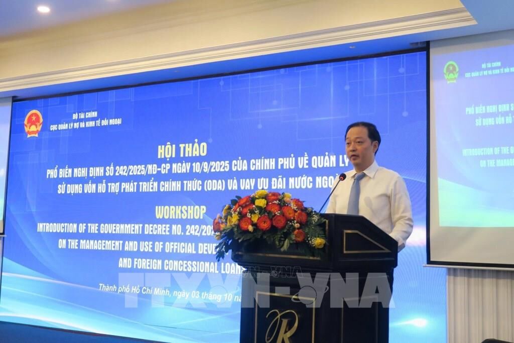 Đây là thông tin tại Hội thảo phổ biến Nghị định số 242/2025/NĐ-CP của Chính phủ về quản lý và sử dụng vốn ODA và vay ưu đãi nước ngoài ở khu vực miền Trung - Tây Nguyên và miền Nam, do Bộ Tài chính tổ chức tại TP. Hồ Chí Minh ngày 3/10.