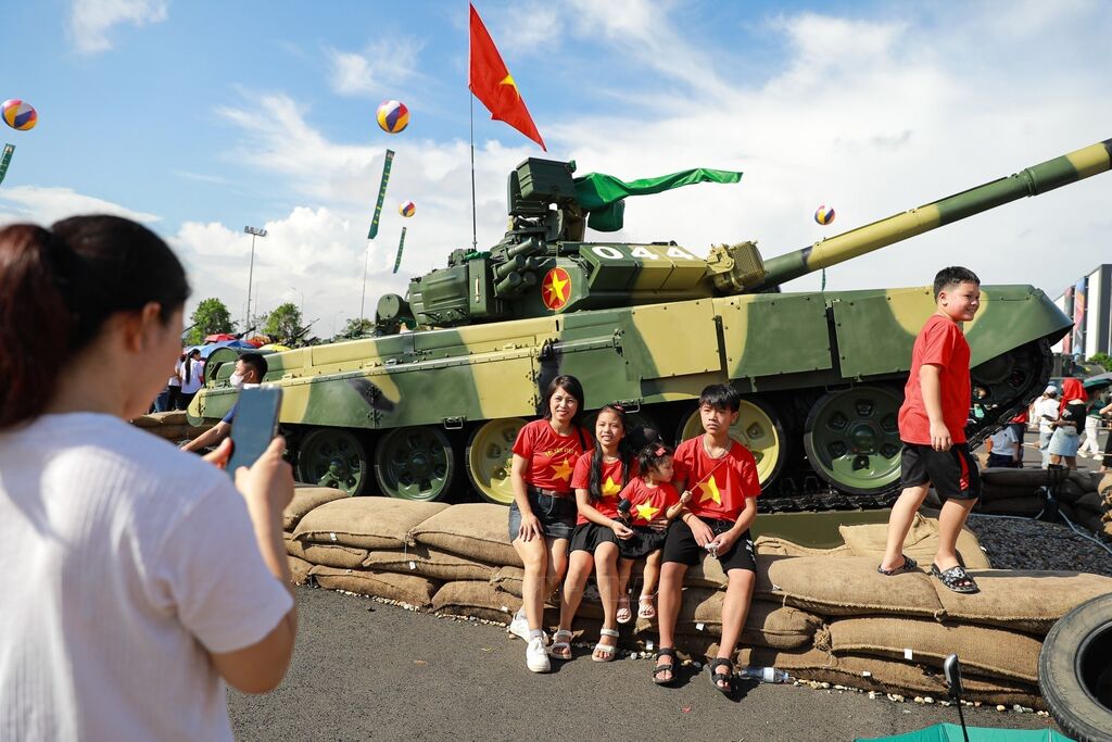 Khu trưng bày khí tài quân sự tại Triển lãm thành tựu Đất nước thu hút khách tham quan