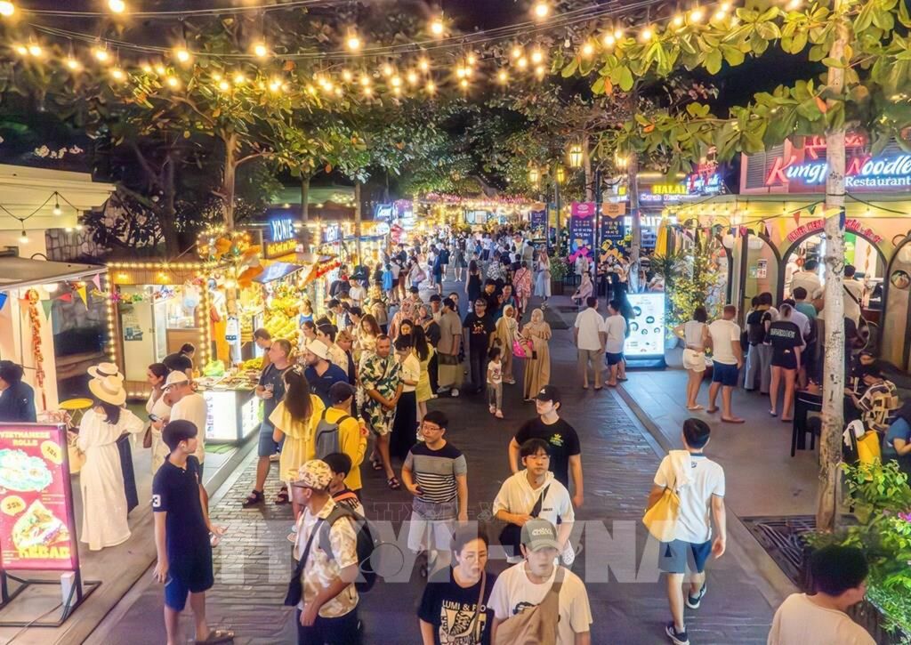 | Du khách dạo chợ đêm Vui Phết, đặc khu Phú Quốc (An Giang). |