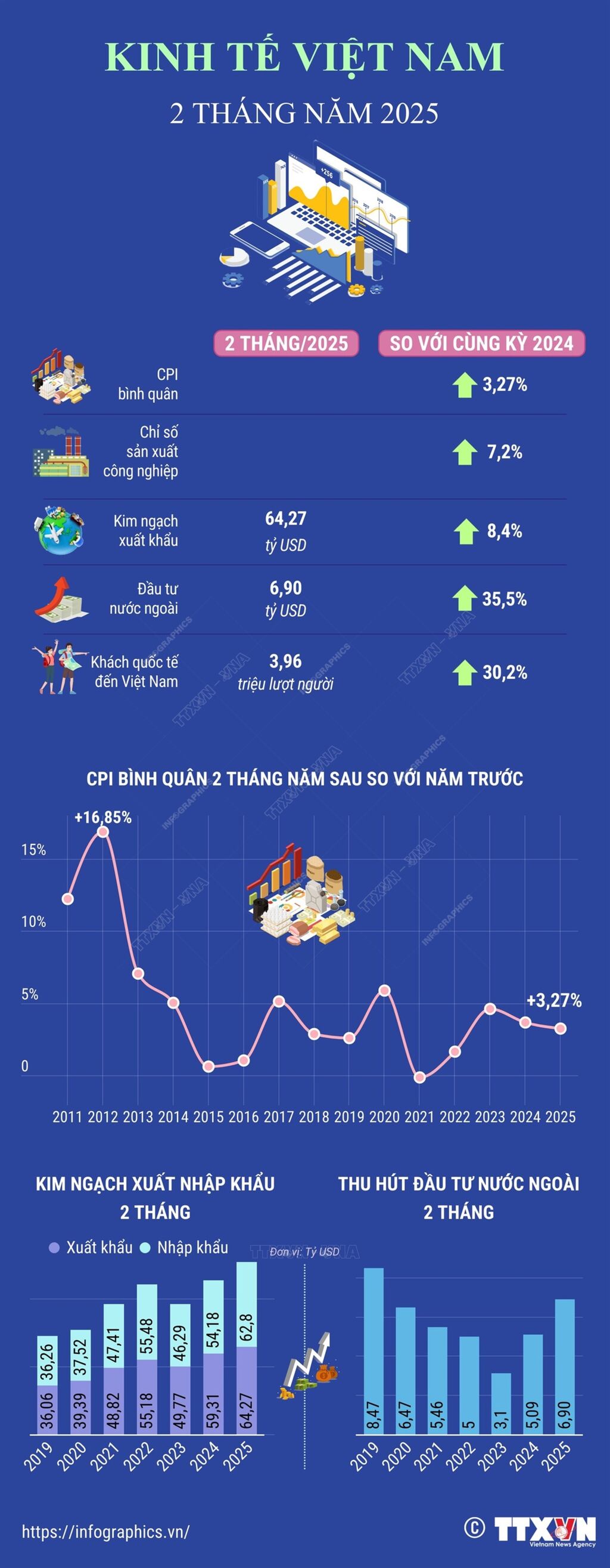 Chính sách thị thực thuận lợi, các chương trình quảng bá, xúc tiến du lịch được đẩy mạnh cùng với những giải thưởng du lịch danh giá được các tổ chức quốc tế trao tặng đã thu hút khách quốc tế đến Việt Nam trong tháng 2/2025 ước đạt gần 1,9 triệu lượt người, tăng 23,7% so với cùng kỳ năm trước. Tính chung 2 tháng đầu năm 2025, khách quốc tế đến Việt Nam đạt hơn 3,96 triệu lượt người, tăng 30,2% so với cùng kỳ năm trước.