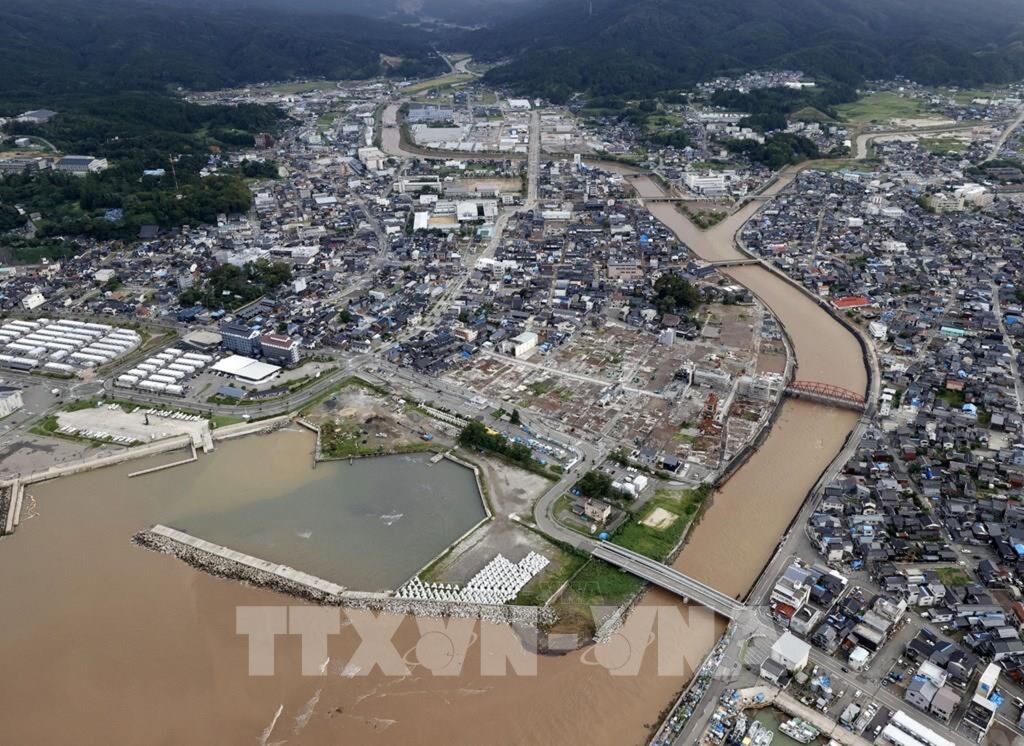 | Cảnh ngập lụt sau những trận mưa lớn tại Wajima, tỉnh Ishikawa, Nhật Bản, ngày 21/9/2024. |