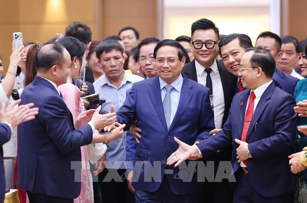 | Thủ tướng Phạm Minh Chính gặp mặt đại diện doanh nghiệp nhân Ngày Doanh nhân Việt Nam. Ảnh: Dương Giang-TTXVN |