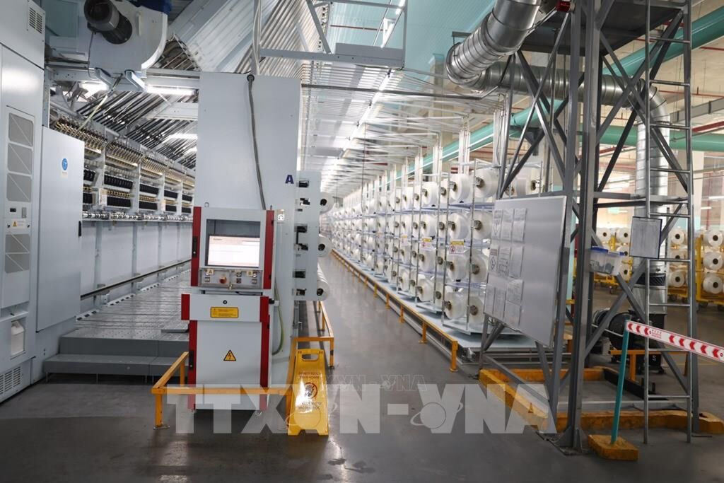| Nhà máy sợi thuộc Công ty TNHH Sợi dệt nhuộm Unitex áp dụng công nghệ mới tối ưu hoá hoạt động theo mô hình tự động. Ảnh: Thanh Tân - TTXVN |