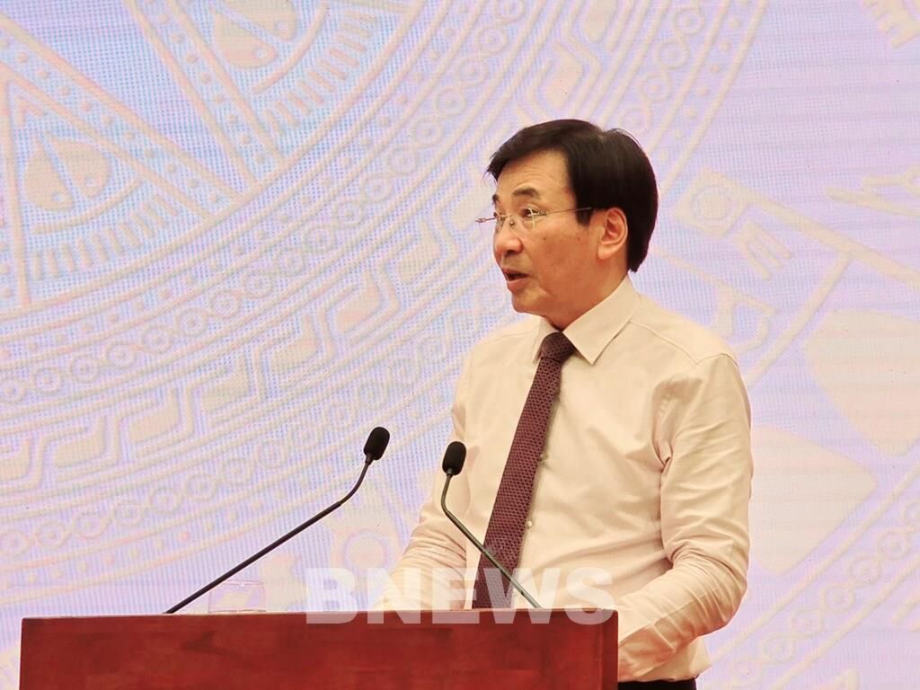 | Bộ trưởng, Chủ nhiệm Văn phòng Chính phủ Trần Văn Sơn phát biểu tại họp báo Chính phủ thường kỳ tháng 4/2025. Ảnh: Văn Xuyên/BNEWS/TTXVN |