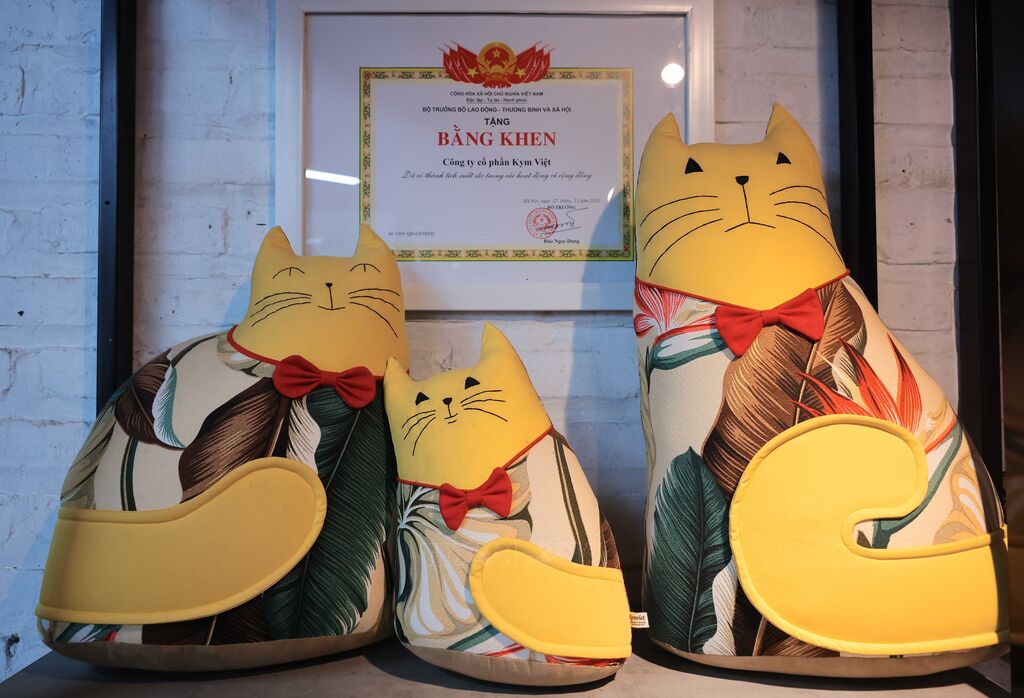 Công ty Cổ phần Kymviet nhận được nhiều Bằng khen, giấy khen vì sự nghiệp phát triển cộng đồng. Ảnh: Hoàng Hiếu - TTXVNKymviet tạo việc làm cho 30 lao động (trong đó 95% là người điếc). Ảnh: Hoàng Hiếu - TTXVNKymviet tạo việc làm cho nhiều lao động trong cộng đồng người điếc, giúp họ thêm tự tin vào bản thân, có thể chăm lo cuộc sống bằng sức lao động chính mình. Ảnh: Hoàng Hiếu - TTXVNCác sản phẩm Kymviet đều được tự thiết kế và mang bản sắc riêng. Ảnh: Hoàng Hiếu - TTXVNGiao tiếp bằng ngôn ngữ ký hiệu giữa những người lao động tại Kymviet. Ảnh: Hoàng Hiếu - TTXVNCác sản phẩm thú nhồi bông Kymviet mang đậm bản sắc văn hoá Việt Nam. Ảnh: Hoàng Hiếu - TTXVNCác sản phẩm Kymviet đều được làm từ nguyên vật liệu an toàn với người sử dụng, được chứng nhận Quacert. Ảnh: Hoàng Hiếu - TTXVN