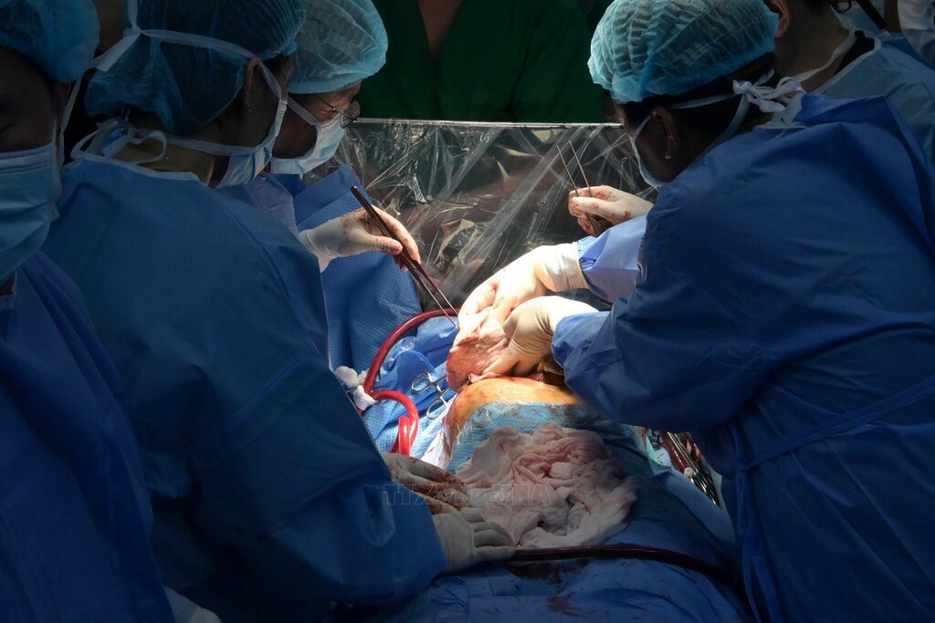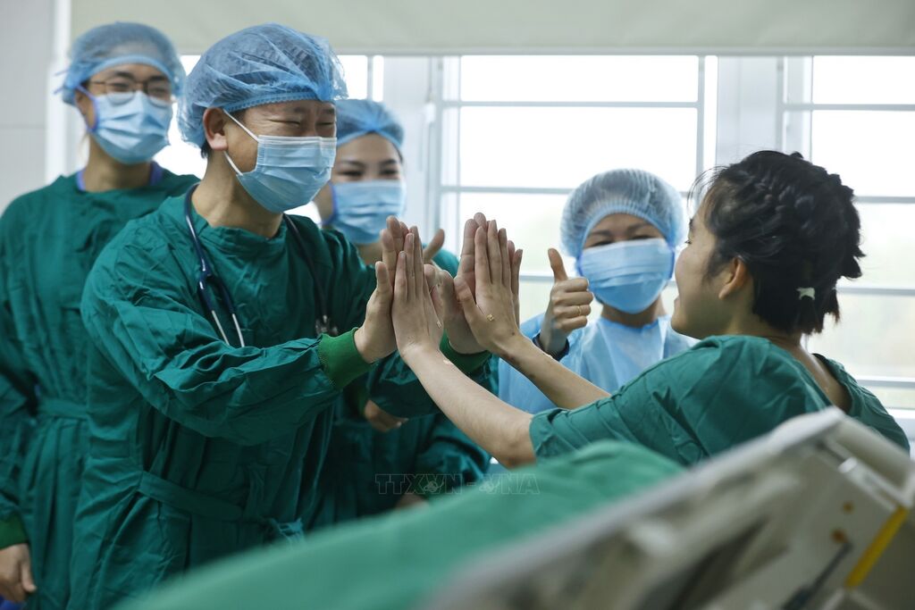Trong năm 2024, ba người đang trong giai đoạn cuối của các bệnh lý phổi mạn tính đã được tái sinh, là thành tựu của bao tâm sức, quyết tâm và cân não của đội ngũ thầy thuốc Bệnh viện Phổi Trung ương. Đêm 30 Tết Giáp Thìn, Trung tâm Ghép phổi (Bệnh viện Phổi Trung ương) đã thực hiện một ca phẫu thuật ghép phổi “phép màu” cho người bệnh Phạm Anh Thư (21 tuổi, quê Bắc Kạn). Sau 1 năm, “cuộc sống mới” của cô sinh viên Trường Đại học Công nghệ thông tin và Truyền thông (Đại học Thái Nguyên) đã bình thường trở lại. Ca ghép thành công là dấu mốc lớn ghi nhận tiến bộ vượt bậc của các thầy thuốc Bệnh viện Phổi Trung ương nói riêng và góp phần quan trọng vào thành tựu kỹ thuật ghép tạng của Việt Nam. Từ đây, các quy trình kỹ thuật chẩn đoán, điều trị nội khoa và phẫu thuật phổi ở nước ta sẽ đúng theo tiêu chuẩn của các nước phát triển. Ảnh: Minh Quyết - TTXVN