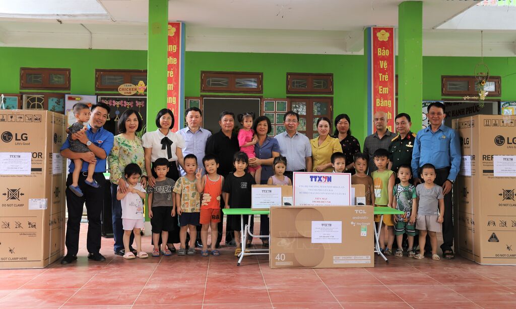 Với tinh thần “Tương thân, tương ái”, chia sẻ khó khăn, chung tay góp thêm nguồn lực hỗ trợ thầy trò các nhà trường vùng lũ khắc phục thiệt hại do bão số 3 gây ra, thay mặt lãnh đạo TTXVN, Phó Bí thư Đảng ủy, Phó Tổng Giám đốc TTXVN Nguyễn Tuấn Hùng đã thăm hỏi, trao tặng mỗi trường 100 triệu đồng, 2 máy tính xách tay, 2 tivi, 2 tủ lạnh cùng nhiều đồ dùng học tập, tổng giá trị hơn 230 triệu đồng.
