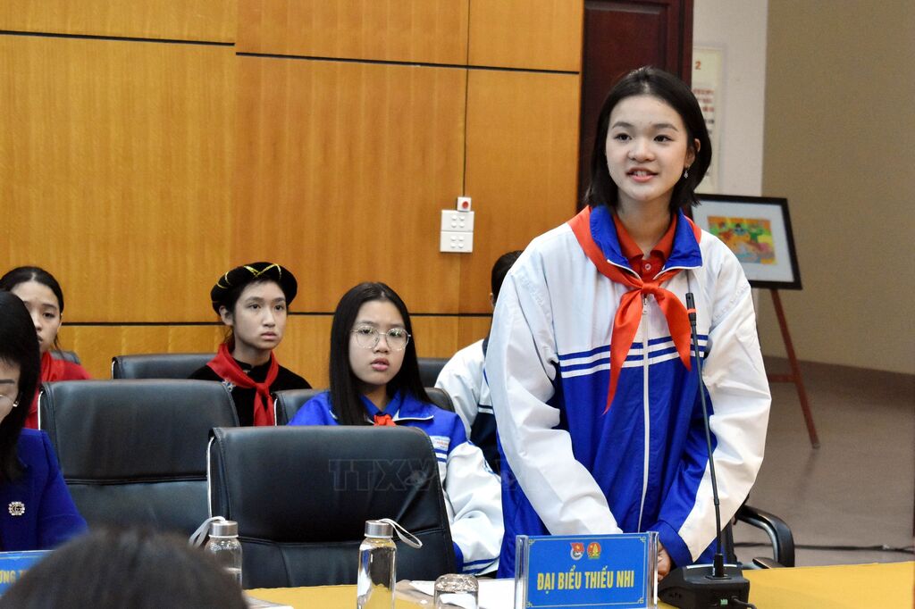 | Thiếu nhi tham gia phát biểu tại diễn đàn. |