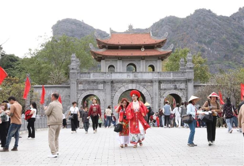 | Du khách thăm quan Khu di tích quốc gia đặc biệt Cố đô Hoa Lư dịp Tết Nguyên đán. |
