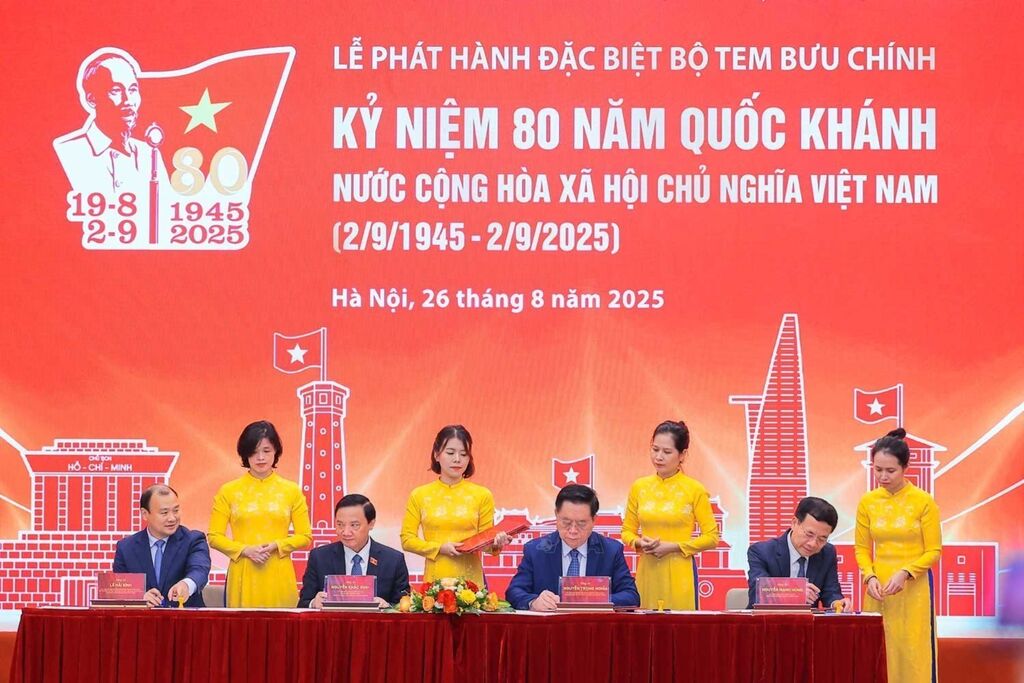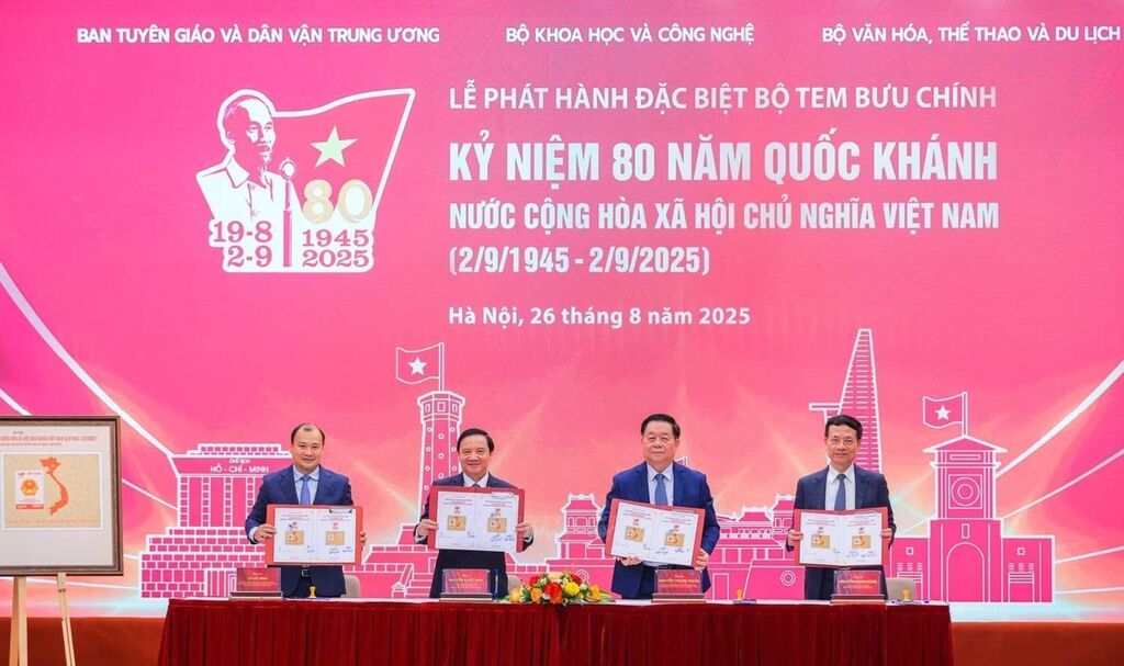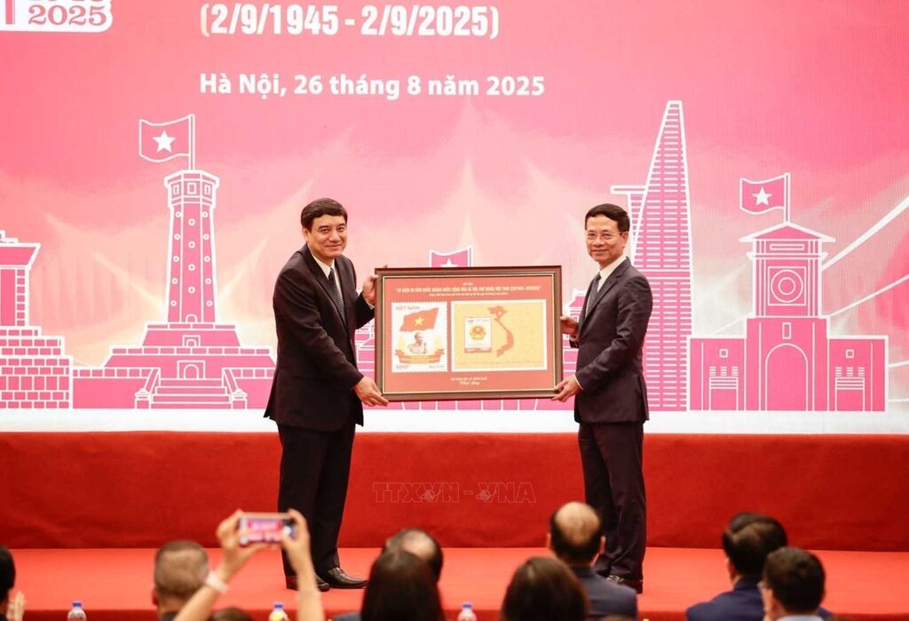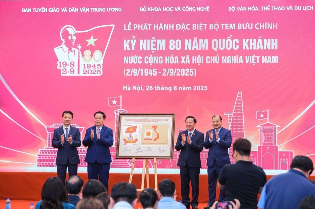 Đồng chí Nguyễn Trọng Nghĩa, Uỷ viên Bộ Chính trị, Bí thư Trung ương Đảng, Trưởng Ban Tuyên giáo và Dân vận Trung ương và các đại biểu thực hiện nghi Lễ khai trương Trung tâm Báo chí. Ảnh: Hoàng Hiếu – TTXVNBộ tem bưu chính đặc biệt ra mắt. Ảnh: Hoàng Hiếu - TTXVNBộ trưởng Bộ Khoa học và Công nghệ Nguyễn Mạnh Hùng tặng bộ tem đặc biệt kỷ niệm 80 năm Quốc khánh (1945 -2025) cho Chủ nhiệm Uỷ ban Văn hoá và Xã hội của Quốc hội Nguyễn Đắc Vinh. Ảnh: Hoàng Hiếu - TTXVNĐồng chí Nguyễn Trọng Nghĩa, Uỷ viên Bộ Chính trị, Bí thư Trung ương Đảng, Trưởng Ban Tuyên giáo và Dân vận Trung ương và các đại biểu với bộ tem bưu chính đặc biệt kỷ niệm 80 năm Quốc khánh nước Cộng hoà xã hội chủ nghĩa Việt Nam (1945 - 2025). Ảnh: Hoàng Hiếu - TTXVNĐồng chí Nguyễn Trọng Nghĩa, Uỷ viên Bộ Chính trị, Bí thư Trung ương Đảng, Trưởng Ban Tuyên giáo và Dân vận Trung ương và các đại biểu ký phát hành đặc biệt bộ tem bưu chính. Ảnh: Hoàng Hiếu - TTXVNĐồng chí Nguyễn Trọng Nghĩa, Uỷ viên Bộ Chính trị, Bí thư Trung ương Đảng, Trưởng Ban Tuyên giáo và Dân vận Trung ương và các đại biểu tại lễ phát hành đặc biệt bộ tem bưu chính. Ảnh: Hoàng Hiếu - TTXVNĐồng chí Nguyễn Trọng Nghĩa, Uỷ viên Bộ Chính trị, Bí thư Trung ương Đảng, Trưởng Ban Tuyên giáo và Dân vận Trung ương và các đại biểu tham dự buổi lễ. Ảnh: Hoàng Hiếu - TTXVNCác đại biểu tham dự buổi lễ. Ảnh: Hoàng Hiếu - TTXVN