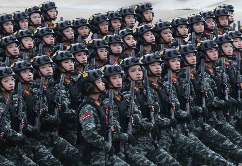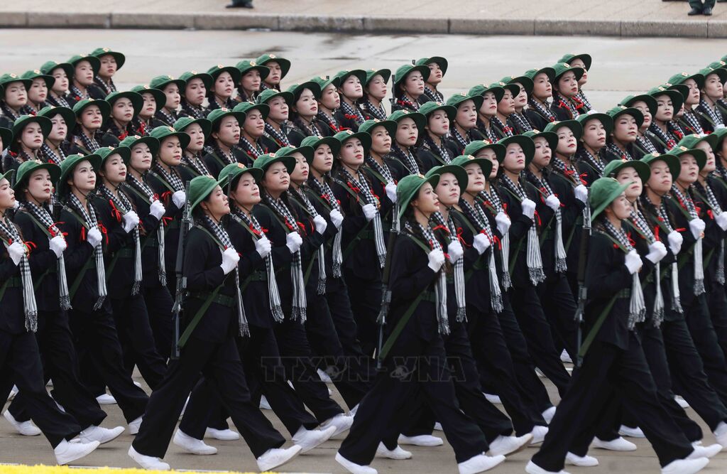 Tiếp theo là khối danh dự 3 quân chủng; khối nữ Quân nhạc; khối sĩ quan Lục quân; khối sĩ quan Hải quân; khối sĩ quan Phòng không - Không quân; khối sĩ quan Biên phòng; khối sĩ quan Cảnh sát biển Việt Nam; khối sĩ quan Hậu cần, Kỹ thuật, Công nghiệp quốc phòng; khối nữ sĩ quan Quân y; khối Học viên các nhà trường Quân đội; khối chiến sĩ Tác chiến điện tử; khối chiến sĩ Đặc nhiệm dù; khối lực lượng Tác chiến không gian mạng; khối nữ Gìn giữ hòa bình Việt Nam; khối chiến sĩ Tăng thiết giáp; khối chiến sĩ Pháo binh – Tên lửa; khối chiến sĩ Đặc công; khối nữ chiến sĩ Biệt động; khối chiến sĩ Công binh; khối nữ chiến sĩ Thông tin; khối chiến sĩ Phòng hóa. Các khối Dân quân, du kích gồm: Khối nam Dân quân tự vệ; khối nữ Dân quân các dân tộc Việt Nam; khối nữ Du kích miền Nam. Các khối diễu binh oai hùng hành tiến biểu tượng cho Quân đội nhân dân Việt Nam cách mạng, chính quy, tinh nhuệ, hiện đại, sẵn sàng chiến đấu, bảo vệ vững chắc độc lập, chủ quyền lãnh thổ của Tổ quốc.