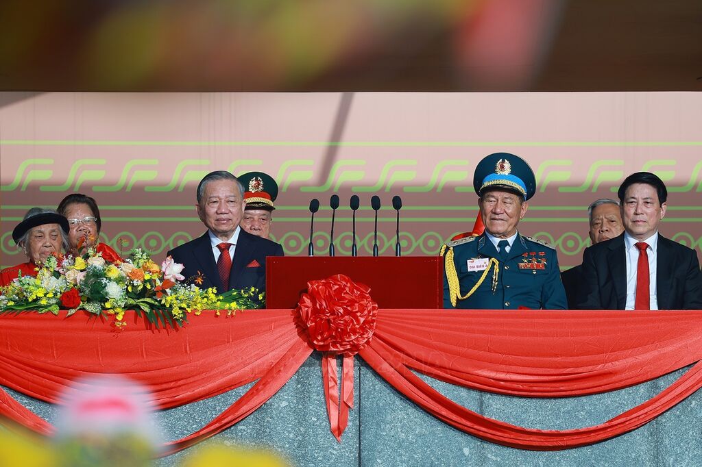 Tổng Bí thư khẳng định, qua chặng đường 80 năm đầy gian khó nhưng hào hùng, dưới ngọn cờ vinh quang của Đảng, với ánh sáng Hồ Chí Minh soi đường, dựa vào sức mạnh nhân dân và khối đại đoàn kết toàn dân tộc, không có khó khăn, thử thách nào mà nhân dân ta không vượt qua; không có mục tiêu cao đẹp nào mà dân tộc ta không đạt tới. Chính vì vậy, không có lực cản nào, không có lý do gì có thể ngăn bước chúng ta vươn tới hòa bình, thịnh vượng, dân tộc ta trường tồn và phát triển.