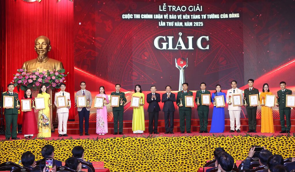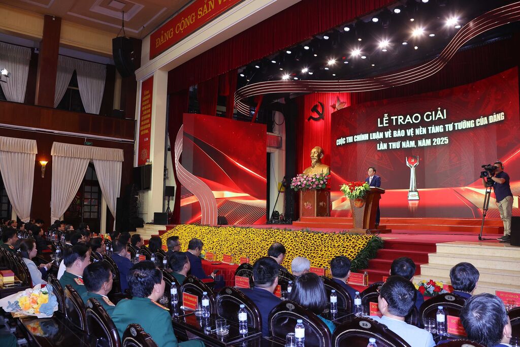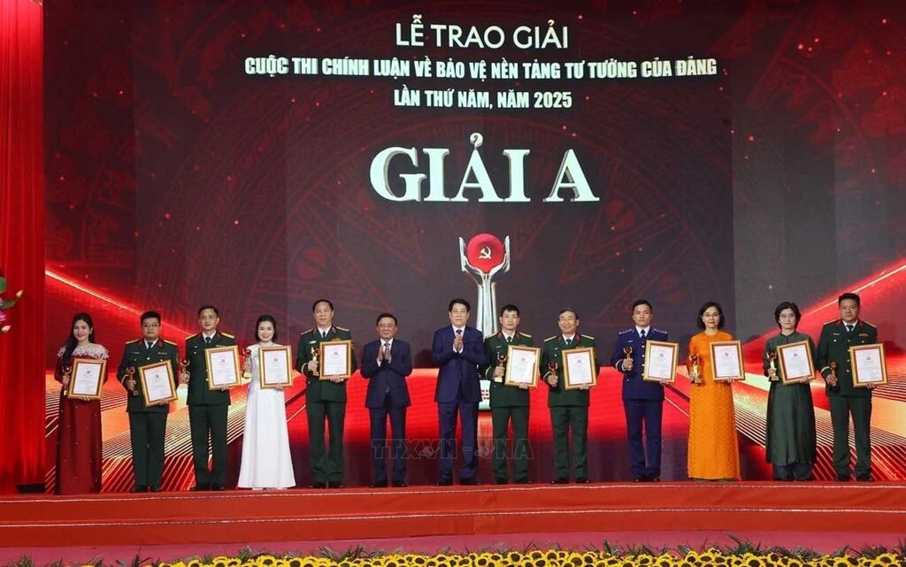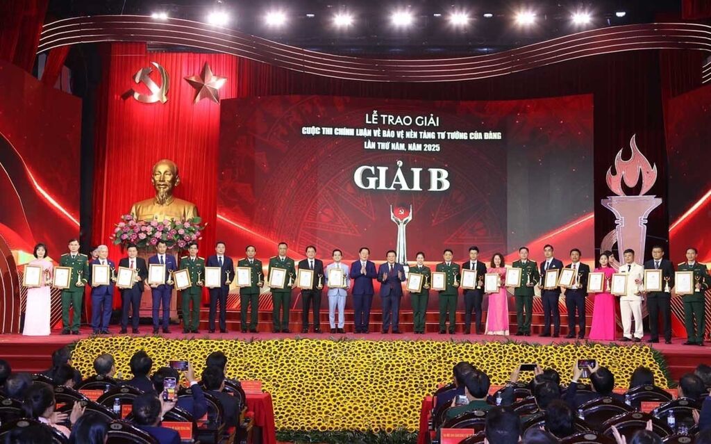 Đồng chí Nguyễn Trọng Nghĩa, Ủy viên Bộ Chính trị, Bí thư Trung ương Đảng, Trưởng Ban Tuyên giáo và Dân vận Trung ương, Phó Trưởng Ban Chỉ đạo 35 Trung ương, Phó Trưởng Ban Chỉ đạo Cuộc thi phát biểu phát động Cuộc thi năm 2026. Ảnh: Văn Điệp – TTXVNĐại tướng Trịnh Văn Quyết, Bí thư Trung ương Đảng, Chủ nhiệm Tổng cục Chính trị Quân đội nhân dân Việt Nam và đồng chí Lê Minh Trí, Bí thư Trung ương Đảng, Chánh án Tòa án nhân dân tối cao trao giải C cho các tác giả và nhóm tác giả đoạt giải. Ảnh: Văn Điệp – TTXVNLãnh đạo và các tác giả Thông tấn xã Việt Nam tại Lễ trao giải Cuộc thi chính luận về Bảo vệ nền tảng tư tưởng của Đảng lần thứ năm - năm 2025. Ảnh: TTXVNĐồng chí Nguyễn Xuân Thắng, Ủy viên Bộ Chính trị, Giám đốc Học viện Chính trị quốc gia Hồ Chí Minh, Chủ tịch Hội đồng Lý luận Trung ương, Phó Trưởng Ban Chỉ đạo 35 Trung ương, Trưởng Ban Chỉ đạo Cuộc thi và đồng chí Nguyễn Trọng Nghĩa, Ủy viên Bộ Chính trị, Bí thư Trung ương Đảng, Trưởng Ban Tuyên giáo và Dân vận Trung ương, Phó Trưởng Ban Chỉ đạo 35 Trung ương, Phó Trưởng Ban Chỉ đạo Cuộc thi trao giải B cho tác giả và nhóm tác giả đoạt giải. Ảnh: Văn Điệp – TTXVNChủ tịch nước Lương Cường và Thường trực Ban Bí thư Trần Cẩm Tú trao giải A cho tác giả và nhóm tác giả đoạt giải. Ảnh: Văn Điệp – TTXVNChủ tịch nước Lương Cường và các đại biểu đến dự Lễ trao giải Cuộc thi chính luận về bảo vệ nền tảng tư tưởng của Đảng lần thứ năm. Ảnh: Văn Điệp – TTXVN