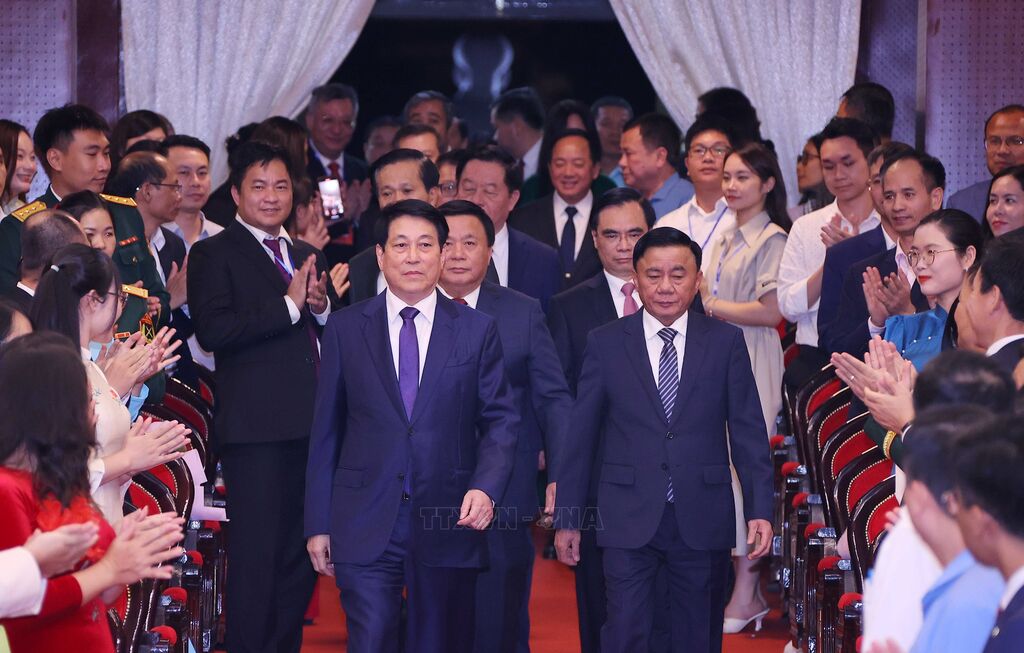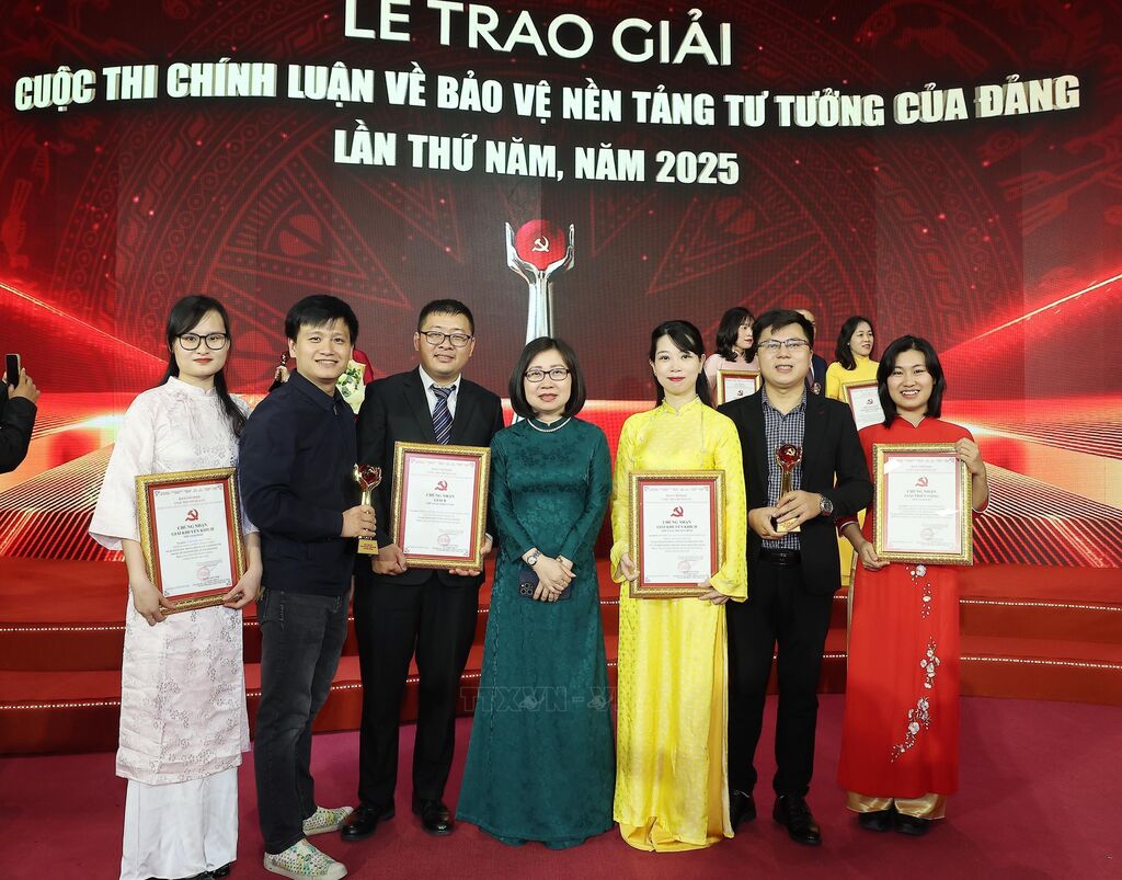 Tối 22/10/2025, tại Học viện Chính trị quốc gia Hồ Chí Minh (Hà Nội), Ban Chỉ đạo 35 Trung ương chỉ đạo, Học viện Chính trị quốc gia Hồ Chí Minh chủ trì, phối hợp với Ban Tuyên giáo và Dân vận Trung ương, Hội đồng Lý luận Trung ương, Báo Nhân Dân, Tạp chí Cộng sản, Đài Truyền hình Việt Nam và Hội Nhà báo Việt Nam đồng tổ chức Lễ trao giải Cuộc thi chính luận về Bảo vệ nền tảng tư tưởng của Đảng lần thứ năm - năm 2025. Đồng chí Lương Cường, Ủy viên Bộ Chính trị, Chủ tịch nước; đồng chí Trần Cẩm Tú, Ủy viên Bộ Chính trị, Thường trực Ban Bí thư, Trưởng Ban Chỉ đạo 35 Trung ương cùng nhiều đồng chí lãnh đạo Đảng, Nhà nước dự lễ trao giải. Ảnh: TTXVN