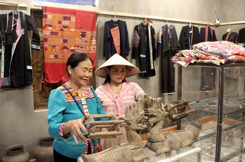 Để du khách có thêm trải nghiệm, bà Bích đã nỗ lực sưu tầm những hiện vật được người Thái sử dụng trong đời sống hằng ngày. Một “bảo tàng” nhỏ với hàng trăm hiện vật được bà sắp xếp gọn gàng, khoa học đã trở thành địa điểm yêu thích của du khách khi về Hoa Tiến.
