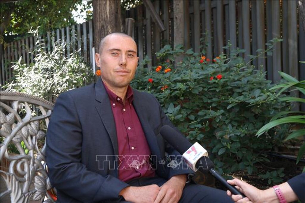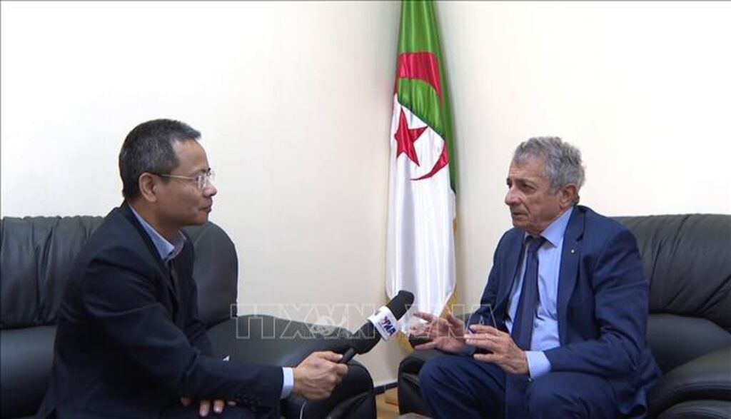 | Ông Mourad Lamoudi, Ủy viên Trung ương phụ trách đối ngoại, Đảng Mặt trận Giải phóng Dân tộc (FLN) ở Algeria trả lời phỏng vấn phóng viên TTXVN. |