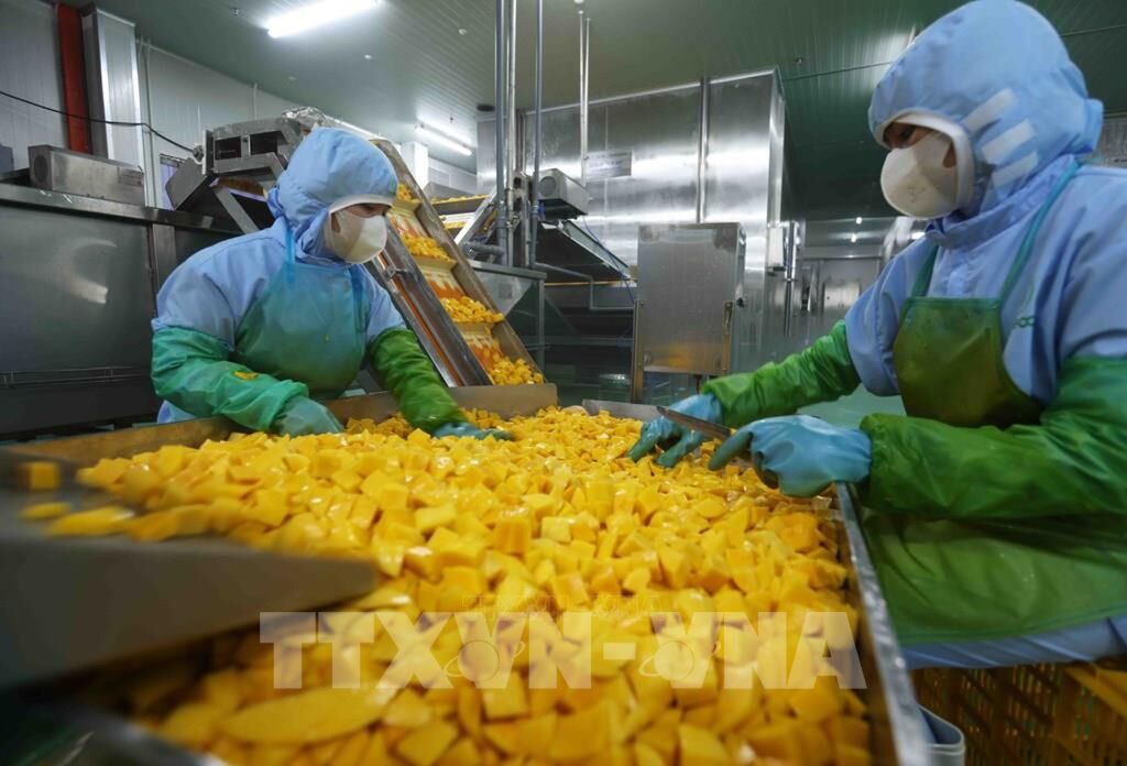 | Dây chuyền chế biến sản phẩm xoài xuất khẩu sang thị trường Mỹ, châu Âu, Hàn Quốc, Nhật Bản ở nhà máy của Công ty CP Rau quả An Giang (tỉnh Lâm Đồng). |