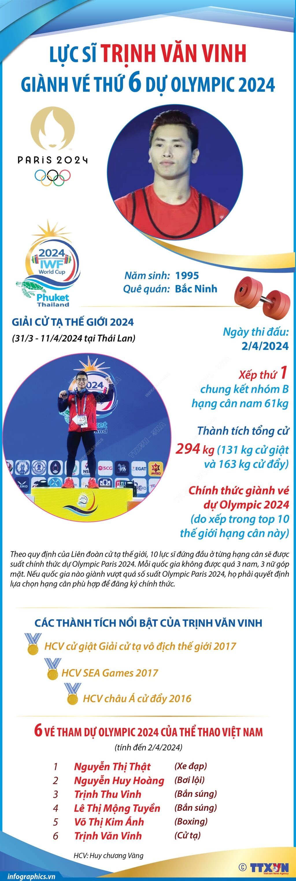 Vượt qua trận tứ kết hạng cân 54kg nữ tại vòng loại Olympic diễn ra từ ngày 3-11/3/2024, tại Busto Arsizio, Italy, nữ võ sĩ Võ Thị Kim Ánh đã mang về cho Thể thao Việt Nam tấm vé dự Olympic Paris 2024 thứ 5.