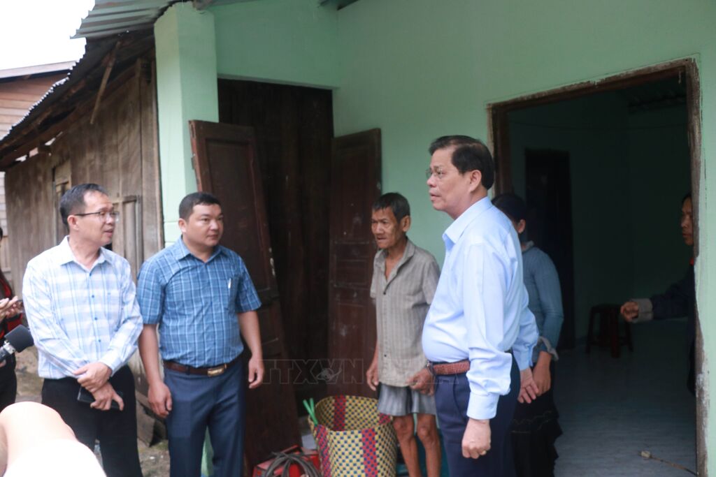 | Chủ tịch UBND tỉnh Khánh Hòa Nguyễn Tấn Tuân thăm các gia đình được hỗ trợ xóa nhà tạm. |
