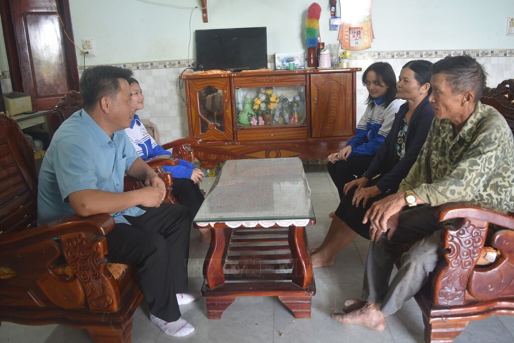 | Lãnh đạo trường THCS Hòa Sơn tại xã Hòa Sơn (Krông Bông, Đắk Lắk) thăm hỏi gia đình học sinh khó khăn. |