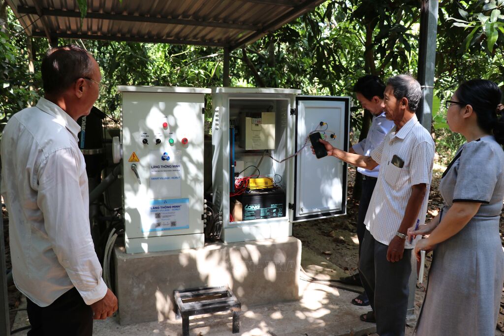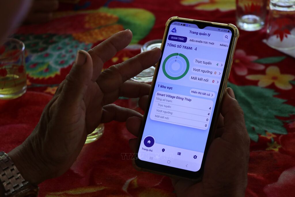 Thiết bị kỹ thuật thu thập dữ liệu của Trạm quan trắc khí tượng được lắp đặt tại Tâm Quê hội quán, xã Tân Thuận Tây, thành phố Cao Lãnh, tỉnh Đồng Tháp. Ảnh: Minh Hưng – TTXVNÔng Đặng Văn Những, Chủ nhiệm Tâm Quê hội quán (đứng giữa) giới thiệu về Trạm quan trắc khí tượng được lắp đặt tại Tâm Quê hội quán, mô hình điểm Làng thông minh. Ảnh: Minh Hưng – TTXVNTrạm quan trắc chất lượng đất, không khí, nước tưới và điều khiển tưới thông minh từ xa được lắp đặt tại Tâm Quê hội quán, xã Tân Thuận Tây, thành phố Cao Lãnh, tỉnh Đồng Tháp. Ảnh: Minh Hưng – TTXVNCác cảm biến độ ẩm của đất thuộc mô hình làng thông minh được lắp đặt tại vườn xoài của gia đình ông Đặng Văn Những, xã Tân Thuận Tây, thành phố Cao Lãnh, tỉnh Đồng Tháp. Ảnh: Minh Hưng – TTXVNHệ thống tưới lá từ trên ngọn xoài được điều khiển thông minh từ xa. Ảnh: Minh Hưng – TTXVNGiao diện theo dõi khí tượng, thổ nhưỡng và điều khiển tưới thông minh được tích hợp trên điện thoại thông minh. Ảnh: Minh Hưng – TTXVNQuét QR để tìm hiểu thông tin về vườn xoài Đặng Văn Những, Tâm Quê hội quán - tỉnh Đồng Tháp. Ảnh: Minh Hưng - TTXVNGiao diện số hóa thông tin về vườn xoài của ông Đặng Văn Những, xã Tân Thuận Tây, thành phố Cao Lãnh, tỉnh Đồng Tháp. Ảnh: Minh Hưng – TTXVNTrạm quan trắc khí tượng (nhiệt độ, độ ẩm không khí, lưu lượng mưa, cường độ ánh sáng) được lắp đặt tại Tâm Quê hội quán, xã Tân Thuận Tây, thành phố Cao Lãnh, tỉnh Đồng Tháp. Ảnh: Minh Hưng – TTXVNHệ thống tưới gốc tự động của mô hình làng thông minh được lắp đặt tại vườn xoài của gia đình ông Đặng Văn Những, xã Tân Thuận Tây, thành phố Cao Lãnh, tỉnh Đồng Tháp. Ảnh: Minh Hưng – TTXVN