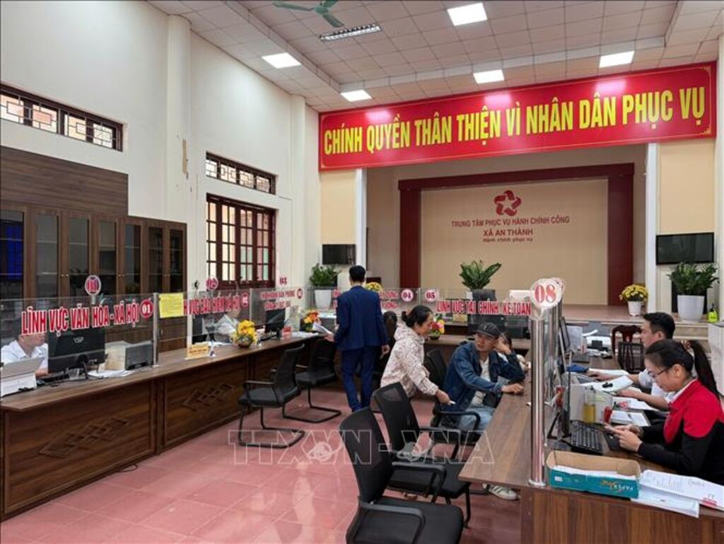 | Người dân đến làm thủ tục tại Trung tâm phục vụ hành chính công của xã An Thành. |