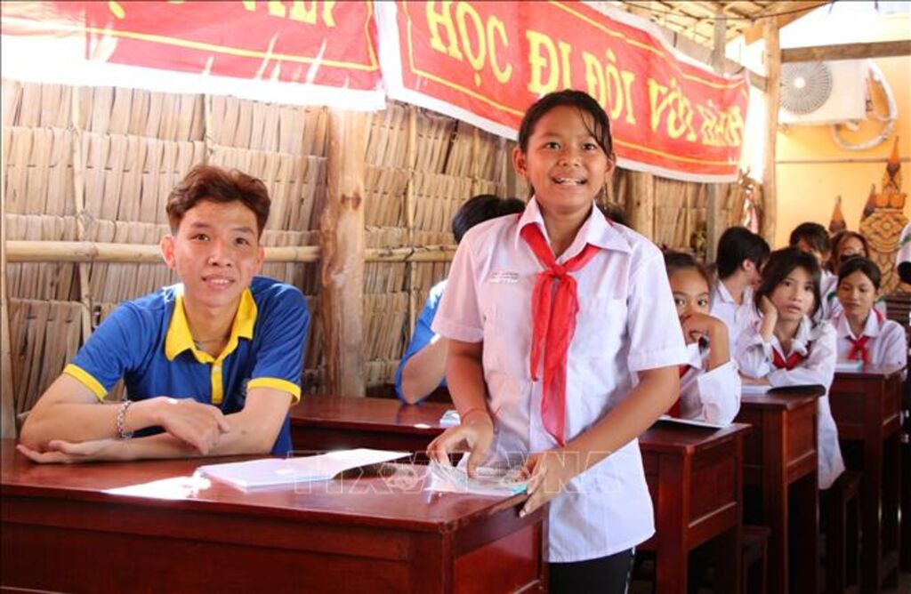 Em Danh Thị Diễm My, ở khu vực 1, phường 4, thành phố Vị Thanh chia sẻ: "Mùa hè chúng em có nhiều thời gian rảnh rỗi hơn. Ngoài học chữ Khmer tại chùa Pô Thi Răng Sây, em còn được tham gia lớp học tiếng Anh miễn phí do các anh, chị đoàn viên thanh niên tổ chức giảng dạy. Mỗi buổi học giúp em có thêm vốn từ mới. Trò chơi đố vui bằng tiếng Anh có thưởng làm bạn nào cũng hào hứng".