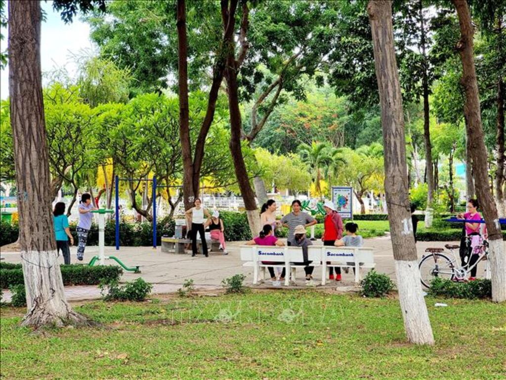 | Người dân tập thể dục, giải trí tại công viên 16/4 (thành phố Phan Rang – Tháp Chàm). |