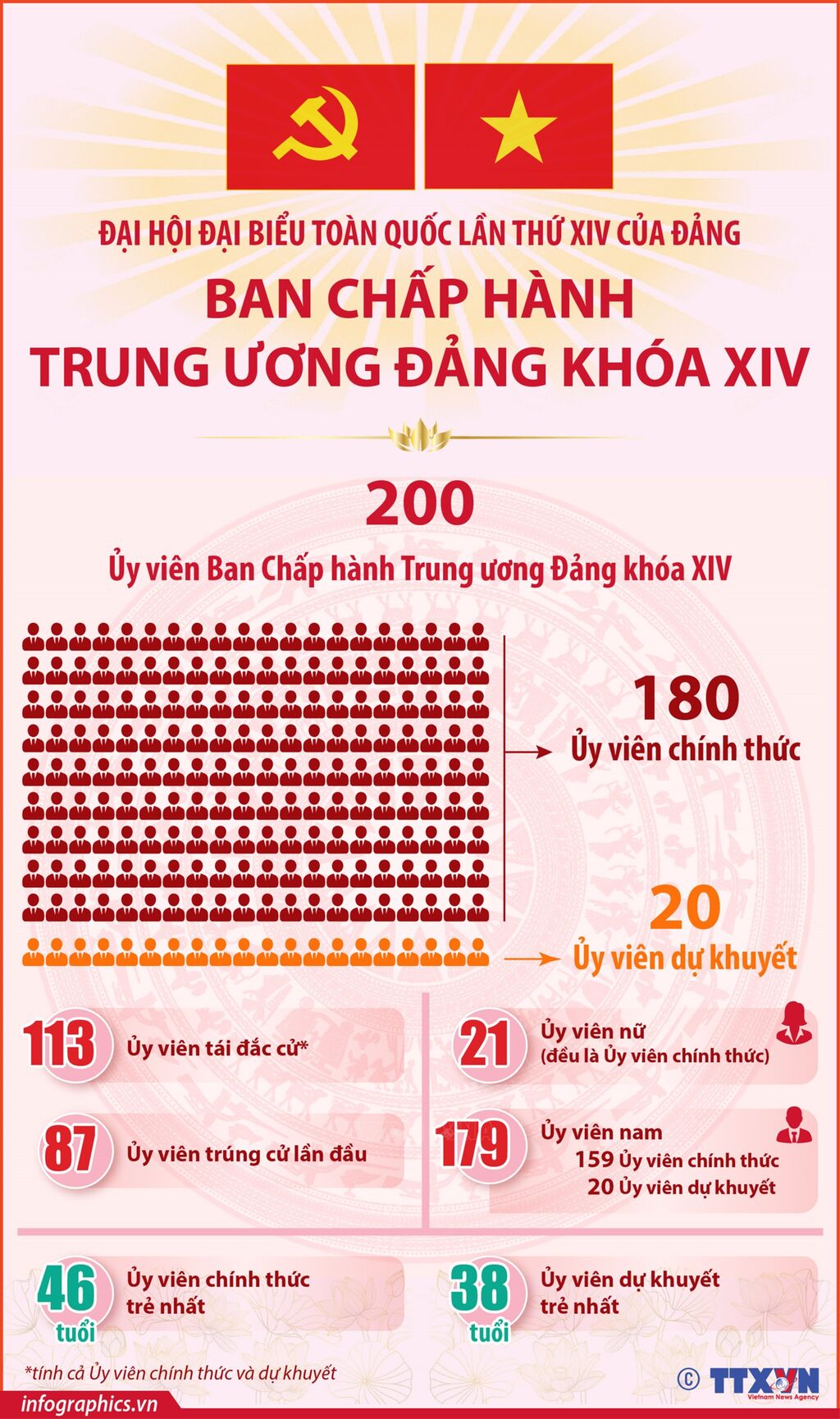 | Một số thông tin về cơ cấu 200 Ủy viên Trung ương Đảng khóa XIV |