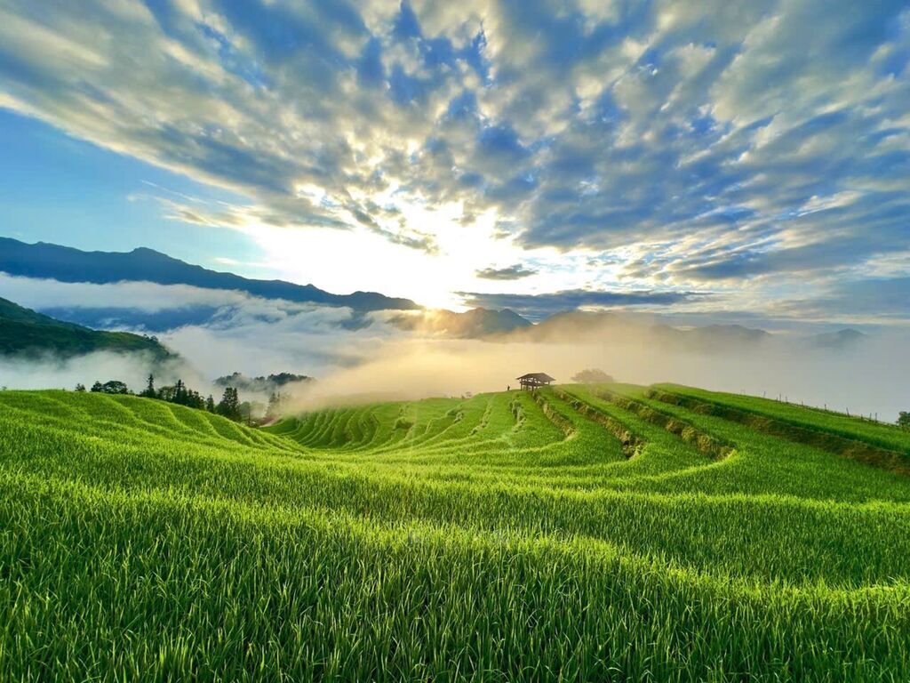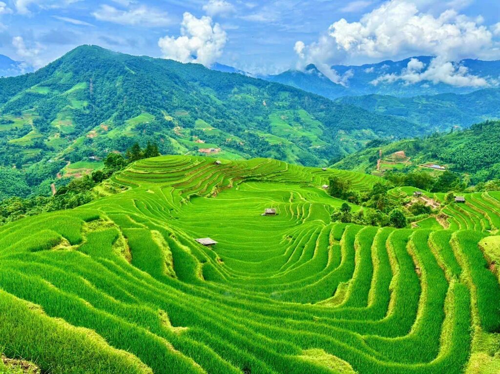 | Ruộng bậc thang uốn lượn quanh sườn núi, tạo nên bức tranh thiên nhiên hùng vĩ và nên thơ. |