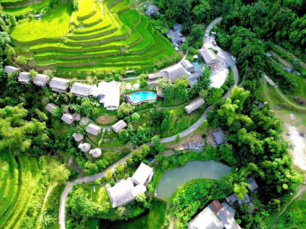 | Làng du lịch cộng đồng Nậm Hồng, xã Thông Nguyên (Tuyên Quang) nằm giữa những thửa ruộng bậc thang, tạo thành điểm nhấn độc đáo. |