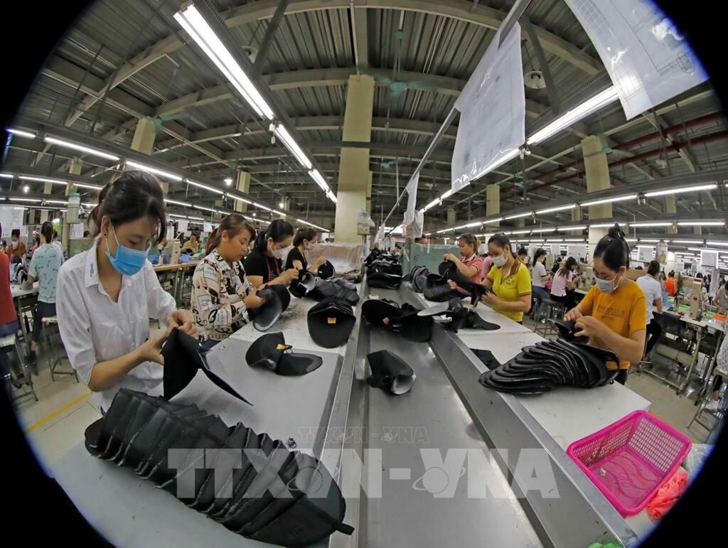 | Dây chuyền sản xuất mũ giầy tại Công ty Giầy Hồng An. |