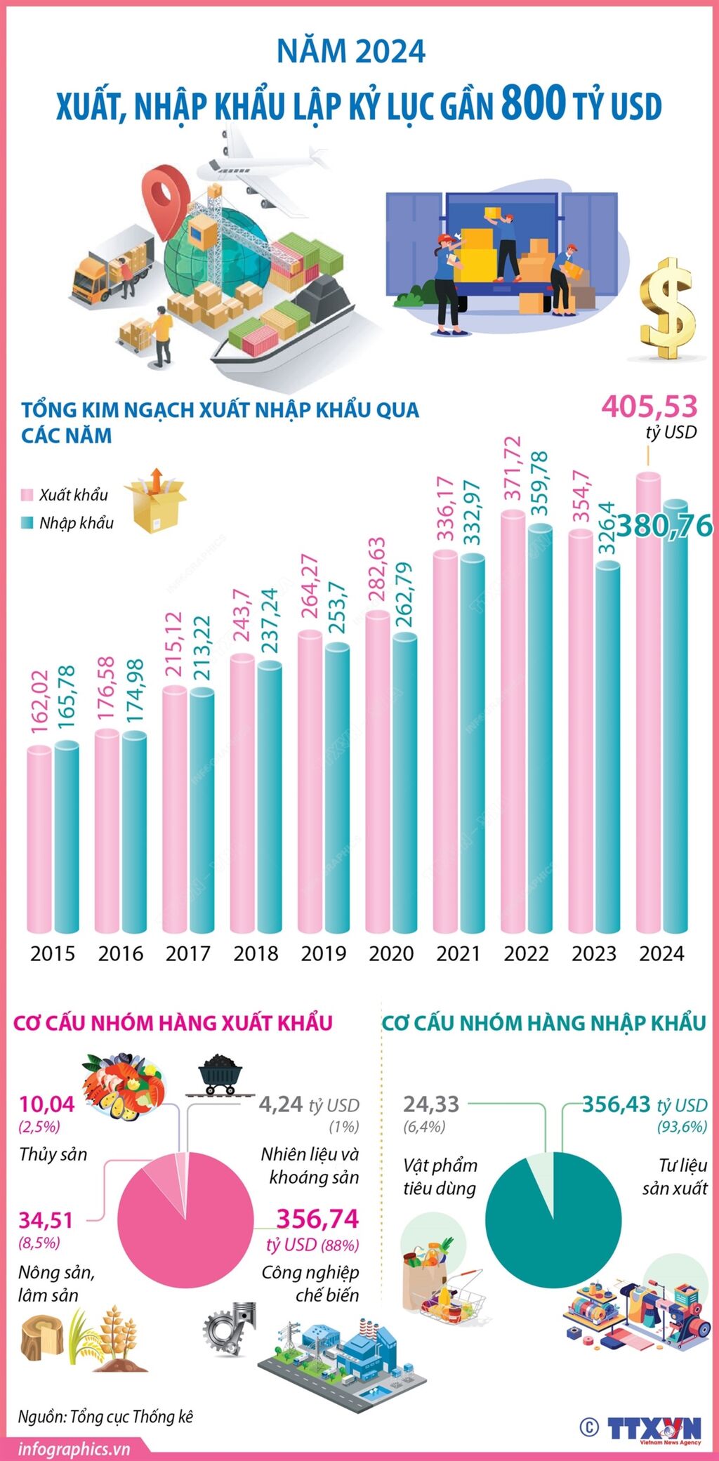Năm 2024: Các cân đối lớn của nền kinh tế được bảo đảm, xuất nhập khẩu lập kỷ lục mới