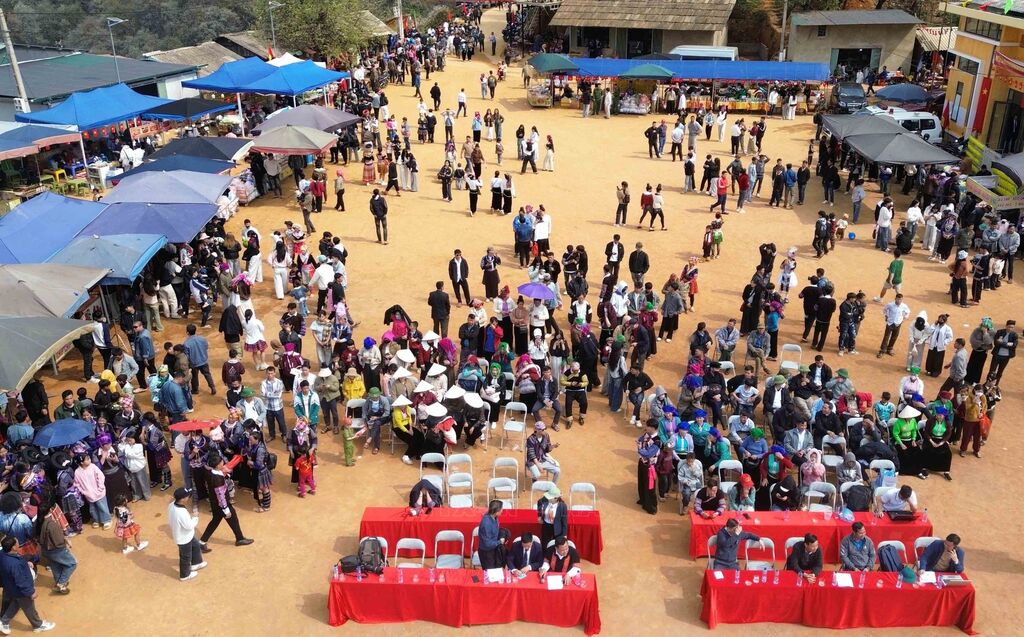Ngày hội hoa sơn tra xã Ngọc Chiến (Sơn La) năm 2026 diễn ra rất nhiều hoạt động trưng bày gian hàng giới thiệu sản phẩm nông sản đặc trưng; trình diễn các tiết mục văn hóa, văn nghệ sôi nổi thu hút đông đảo đồng bào các dân tộc trên địa bàn xã và du khách tham dự. Ảnh: Quang Quyết - TTXVN