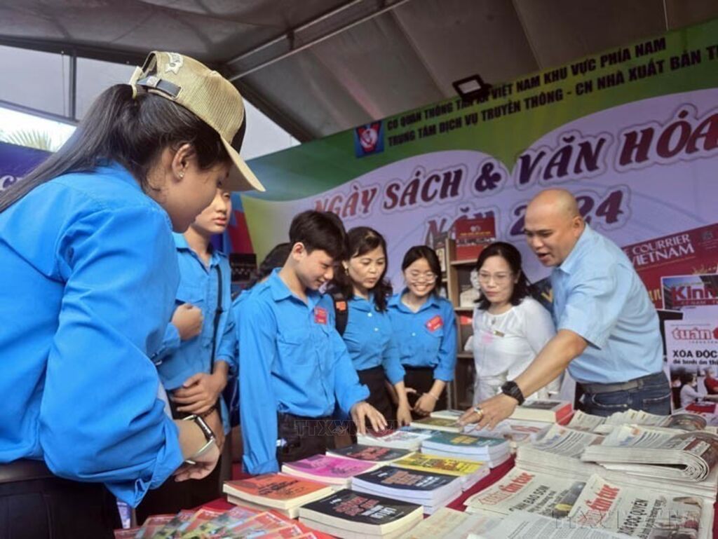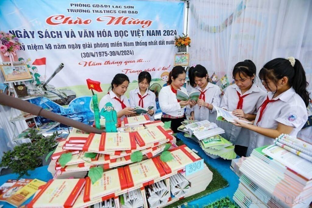 Việc lấy ngày 21/4 hằng năm là Ngày Sách và Văn hóa đọc Việt Nam thể hiện sự hội nhập của Việt Nam với thế giới trong lĩnh vực văn hóa, xuất bản… Là dịp để tôn vinh giá trị của sách, khẳng định vị trí, vai trò và tầm quan trọng của sách trong đời sống xã hội cũng như tôn vinh người đọc và những người tham gia sưu tầm, sáng tác, xuất bản, in, phát hành, lưu giữ sách. Một số thông điệp của Ngày Sách và Văn hóa đọc Việt Nam năm 2025 là: "Văn hóa đọc - Kết nối cộng đồng", "Cùng sách bước vào kỷ nguyên vươn mình của dân tộc", "Đọc sách - làm giàu tri thức, nuôi dưỡng khát vọng, thúc đẩy đổi mới, sáng tạo". Ảnh: TTXVN