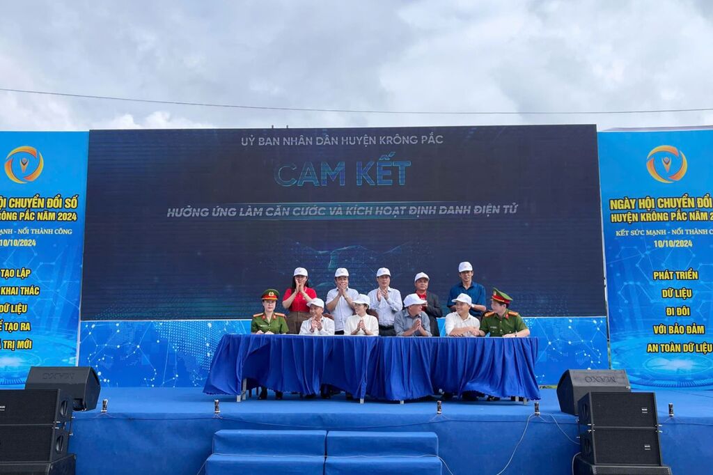 | UBND huyện Krông Pắc, tỉnh Đắk Lắk tổ chức ký kết cam kết hưởng ứng làm căn cước và kích hoạt định danh điện tử. |
