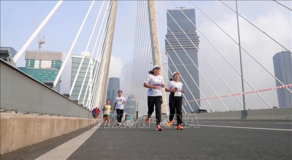 | Các vận động viên di chuyển trên cầu Ba Son (Thành phố Hồ Chí Minh). |