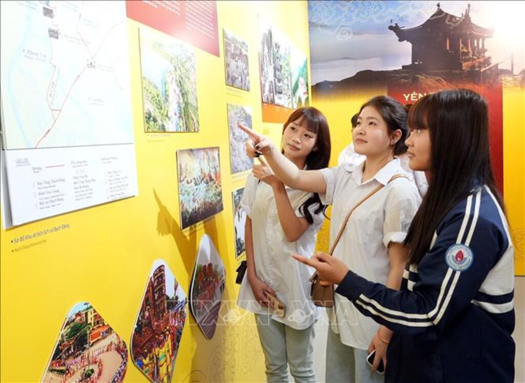 | Học sinh tham quan trưng bày chuyên đề “Giới thiệu Di sản văn hóa thế giới Quần thể di tích và danh thắng Yên Tử - Vĩnh Nghiêm - Côn Sơn, Kiếp Bạc”. |