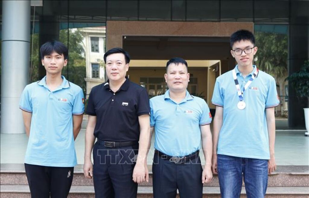 | Thầy Trần Duy Phương, Hiệu trưởng Trường THPT Chuyên Bắc Giang; thầy Nguyễn Văn Đóa, giáo viên Vật Lý cùng 2 học sinh Thân Thế Công, Trương Phi Hùng đoạt Huy chương Vàng tại kỳ thi Olympic Vật lý Quốc tế (IPHO) 2024. |