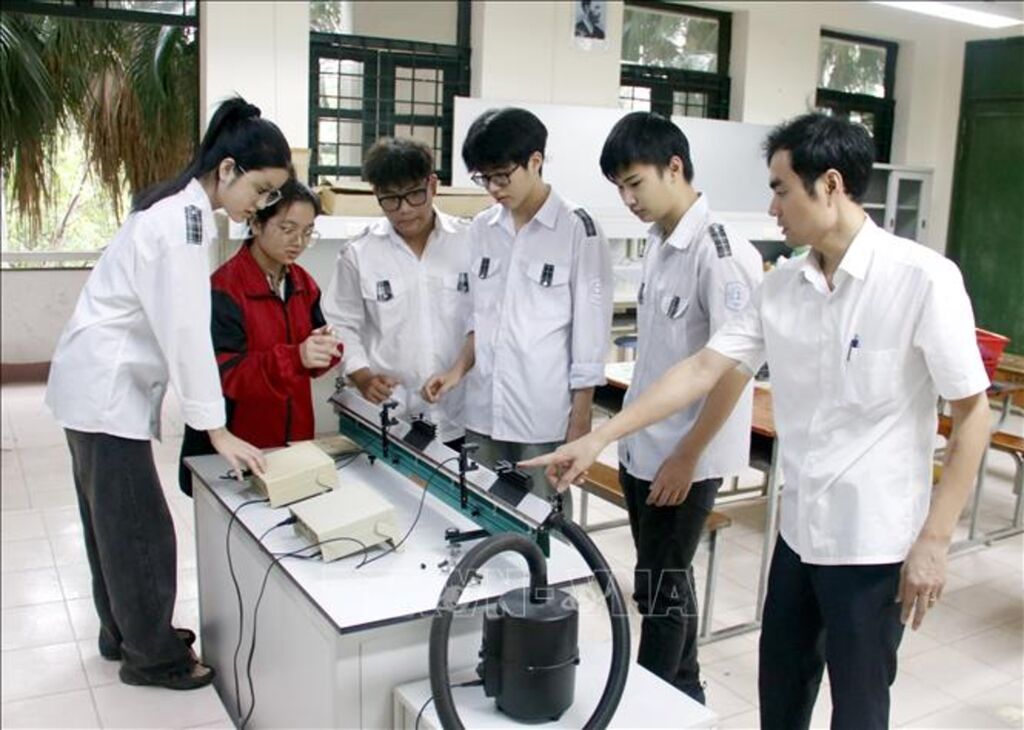 | Học sinh Trường THPT Chuyên Bắc Giang tham gia giờ học thực hành tại phòng thí nghiệm. |